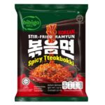 Bibigo Stir Fried Ramyun Spicy Tteokbokki 122 g combina fideos coreanos salteados con el inconfundible sabor picante del tteokbokki. Intenso, práctico y delicioso para disfrutar un auténtico toque coreano en minutos.