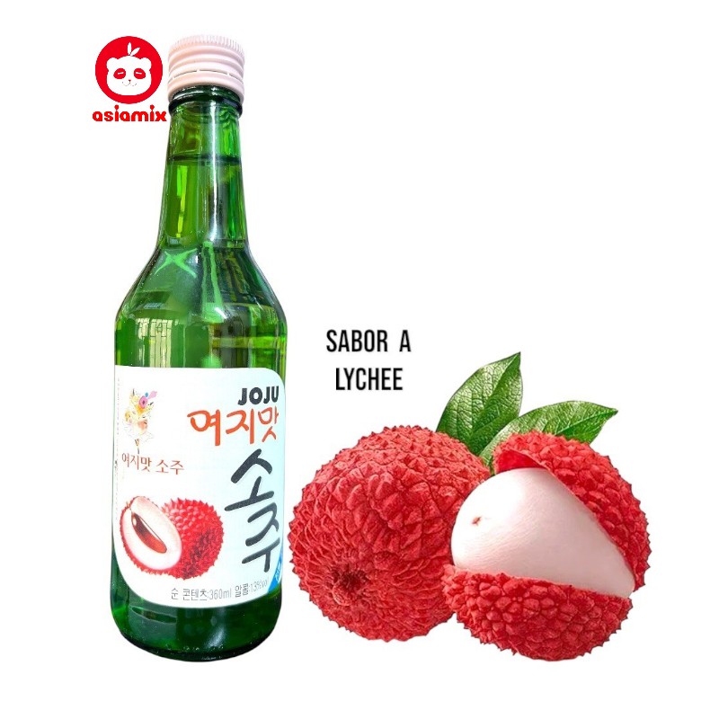 Licor coreano destilado de arroz sabor lychee, presentación de 360 ml, caja por 20 unidades. Venta exclusiva para mayores de edad.