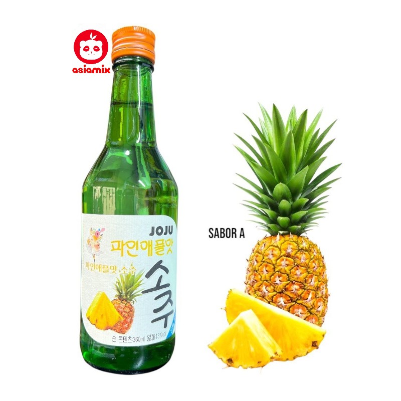 Licor coreano destilado de arroz sabor piña, presentación de 360 ml, caja por 20 unidades. Venta exclusiva para mayores de edad.