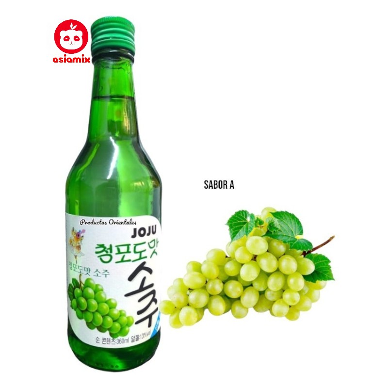 Licor coreano destilado de arroz sabor uva verde, presentación de 360 ml. Venta exclusiva para mayores de edad.