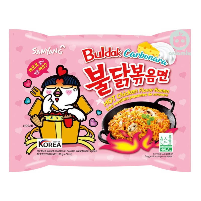 Buldak Carbonara 130GR, ramyun coreano picante y cremoso, con delicioso sabor estilo carbonara y fideos de excelente textura.